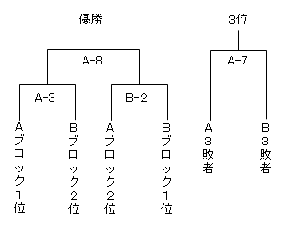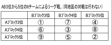 試合形式 : 各ブロック上位2チームによる決勝トーナメントおよび3位以下のチームによる順位決定リーグ